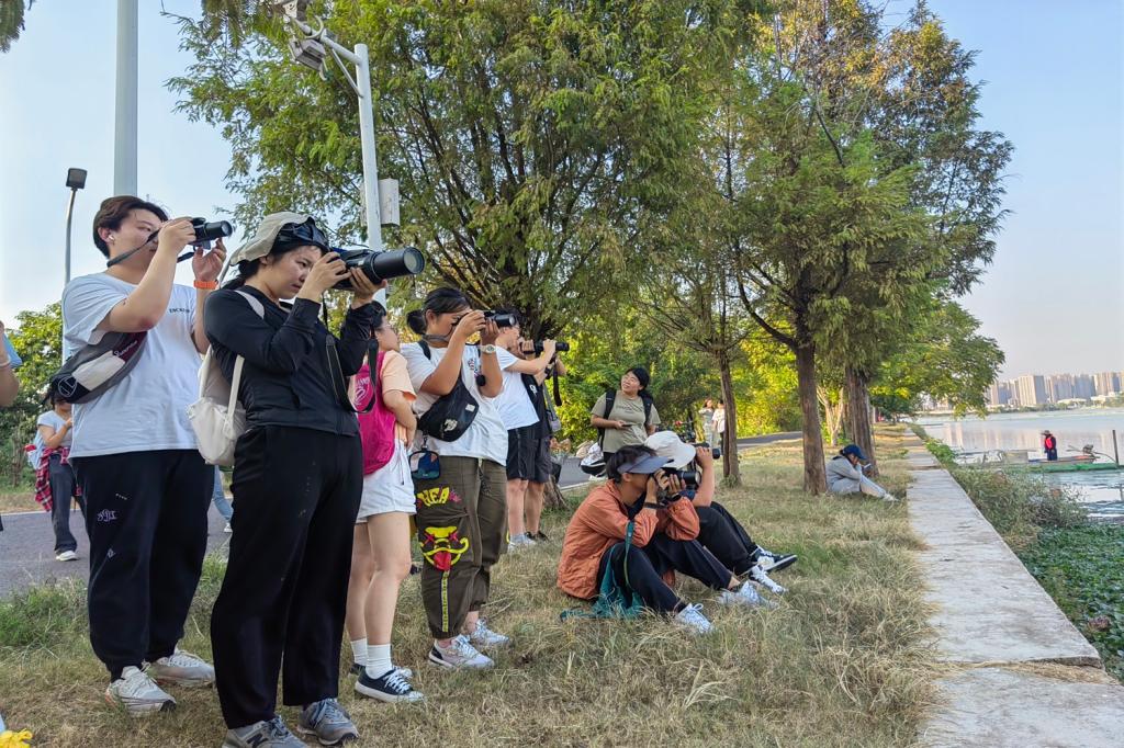 时维九月,序属三秋,独特而优越的自然生态环境让“山水校园”成为不少越冬候鸟的临时栖息地,别开生面的观鸟活动在校园内开展。在98堂动物繁殖与特种经济动物学系副教授李翔老师的带领下,观鸟爱好者们漫步“浪漫湖岸线”“林中路”,用相机镜头和望远镜镜筒捕捉各类野生鸟类的身影。活动中,李翔对专业设备的操作方法进行讲解。他特别分享了大白鹭、小白鹭、八哥等鸟类的区分方法,增进了观鸟爱好者对校园内野生鸟类种群的了解和认识。