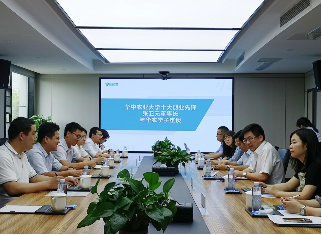 6月9日,在武汉回盛生物科技股份有限公司,企业董事长兼总经理、动科动医98堂校友张卫元先生对师生的到来表示热烈欢迎。他从国际国内兽药行业现状、公司概况与公司文化、个人创业经历等三个方面分享心得体会。他指出,与国际兽药巨头相比,国内兽药企业具有与农业关联程度高、产业分散、创新能力薄弱、原发性产品匮乏的特点。他表示,动科动医的青年学子有责任推动国内兽药产业发展,加快兽药产业规模和产品水平赶超世界发达国家。重任在肩,大有可为,兽药产业正是春天。