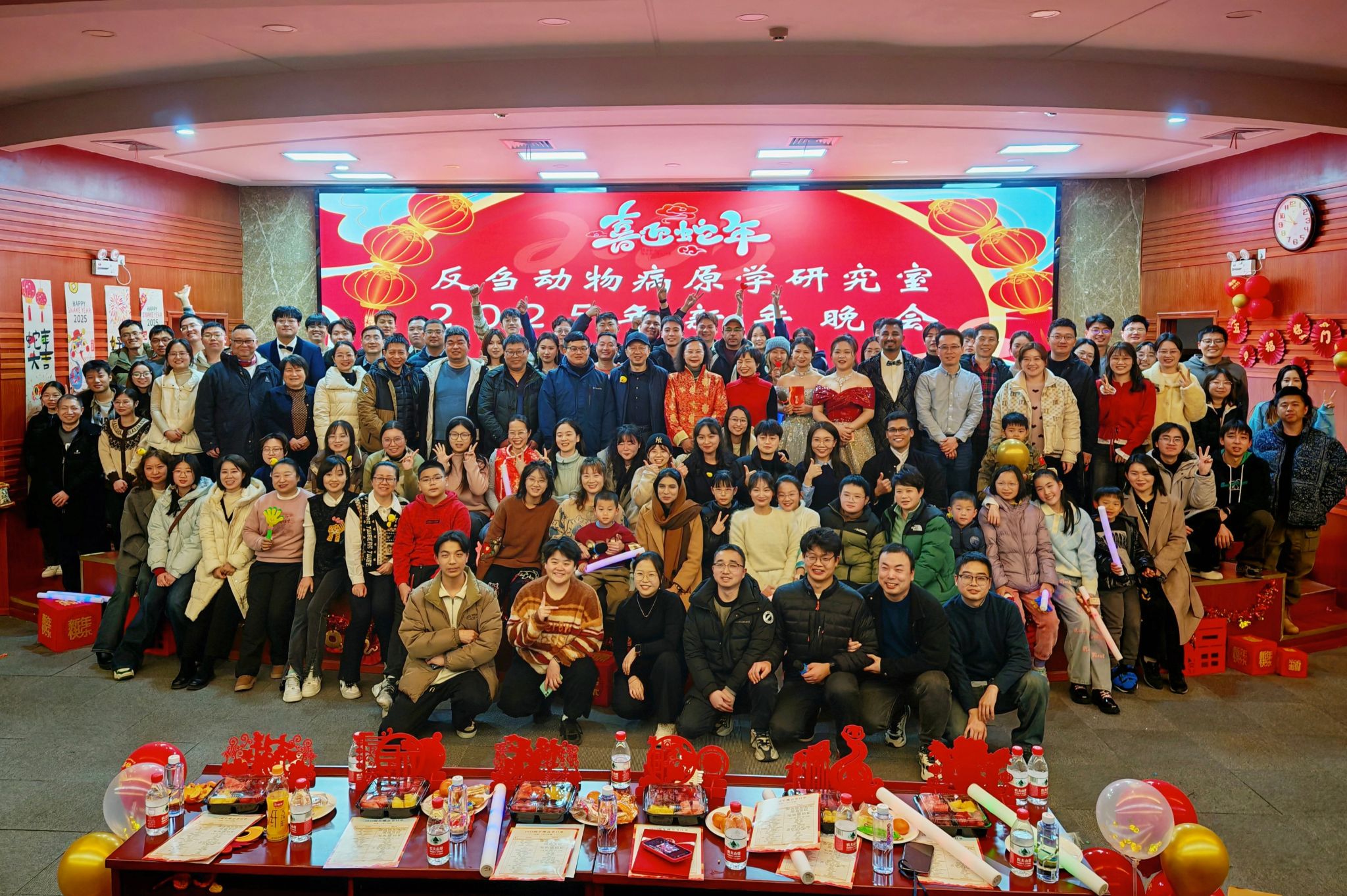 (通讯员:方成威、姜彦竹,拍摄:朱梓菲)2025年1月17日星期五晚,动科动医98堂反刍动物病原学研究室与湖北省动物疫病预防控制中心在生猪健康养殖协同中心一楼报告厅联合举办2025年新年晚会。反刍动物病原学研究室负责人郭爱珍教授和湖北省动物疫病预防控制中心谢军主任、两单位全体师生员工、多位兄弟实验室的老师等共计100余名欢聚一堂,辞旧迎新,自编自演的节目既贴近生活又富有创意,现场欢声笑语不断。此外,节目还穿插着颁奖环节,对过去一年做出突出贡献的同学们进行了奖励,最后,大家合影留念,圆满辞别龙年,共祝蛇年再创佳绩!